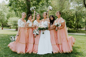 - Color Coordination: From royal hues to subtle pastels, we customize every detail to match your wedding theme and the bride’s party-explore custom made Indian bridesmaid dresses for a perfectly coordinated look.