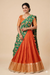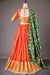 Look simple yet stylish by wearing this trendy Orange Mangalagiri Pattu Lehenga with blouse and Green floral dupatta from Anu Attires.